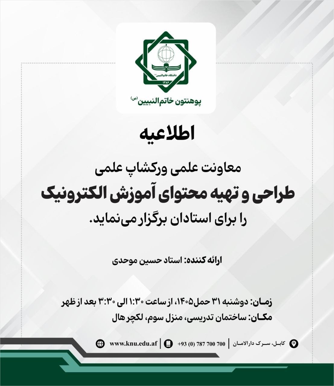 اطلاعیه ورکشاپ طراحی و تهیه محتوای آموزش الکترونیک برای اساتید