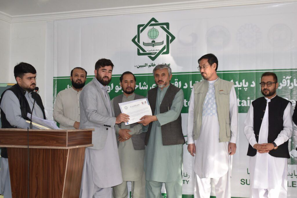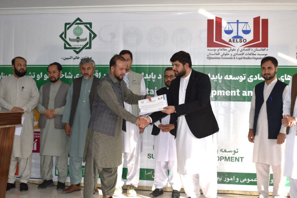این محفل علمی با اهدای سرتیفیکیت به شرکتکنندگان به پایان رسید. همچنین ریاست مؤسسه AELSO با اهدای مجموعهای از آثار و محصولات علمی خود به مسئولان پوهنتون خاتمالنبیین(ص)، از همکاری و میزبانی این نهاد علمی قدردانی نمود.