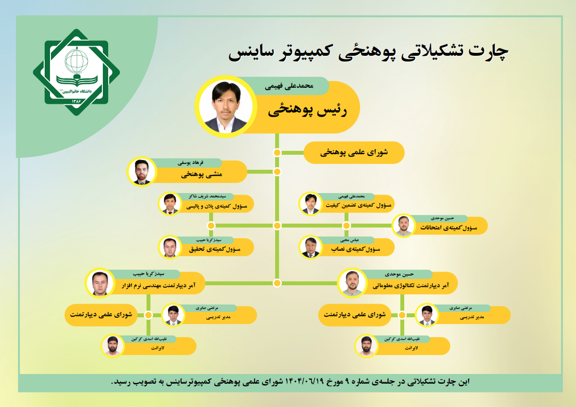 ساختار تشکیلات دیپارتمنت شامل آمریت دیپارتمنت، اعضای شورای علمی، مدیر تدریس و لابرانت که در چارت زیر ارائه شده است.