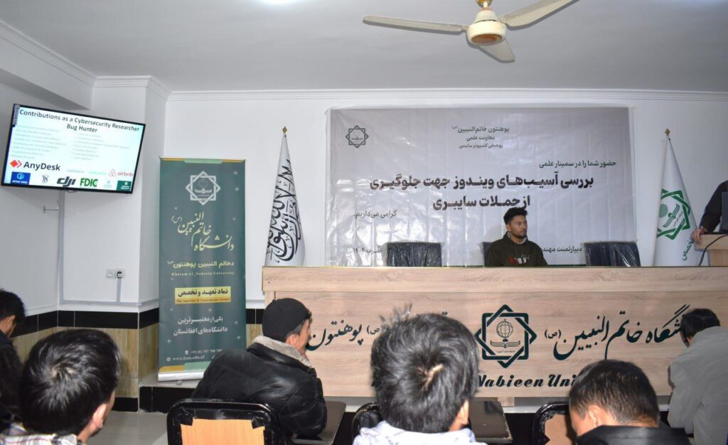 یکی از چالشهای اساسی امروزه نرمافزارها و برنامههای نرمافزاری، آسیبپذیری آنان در مقابل انواع حملات سایبری است که به اهداف تخریب، سوءاستفاده مالی، سیاسی، فرهنگی و دزدی اطلاعات توسط حملهکنندگان (Attackers) انجام میشود. با توجه به ترویج سریع و پررنگ شدن نرمافزارها در زندگی امروزه ما، همزمان سوءاستفاده سایبری و اخاذیهای سایبری نیز رو به افزایش است که سالانه قربانیان زیادی در سراسر جهان بهویژه در افغانستان دارد. از آنجایی که نرمافزارهای سیستمی بهویژه سیستمعامل، که نمونه مشهود آن در بازار افغانستان استفاده میشود، ویندوز با نسخههای متعدد آن است که تقریباً امروزه در پیشبرد تمام امورات اداری، فرهنگی، اقتصادی و اجتماعی از آن استفاده میشود. بناءً آگهی در زمینه نرمافزارهای کاربردی یکی از مهمترین اموری است که افراد در بخشهای مختلف بهویژه محصلان باید داشته باشند. به همین دلیل برای ارتقای ظرفیت محصلان بهگونه مسلکی و جهت آگهی از آسیبهای ویندوز، دیپارتمنت مهندسی نرمافزار، دانشکده کامپیوترساینس، دانشگاه خاتمالنبیین (ص) سمینار علمی تحت عنوان «بررسی آسیبهای ویندوز جهت جلوگیری از حملات سایبری» را در تاریخ ۲/۰۹/۱۴۰۴ در تالار کانفرانسها برگزار کرد.