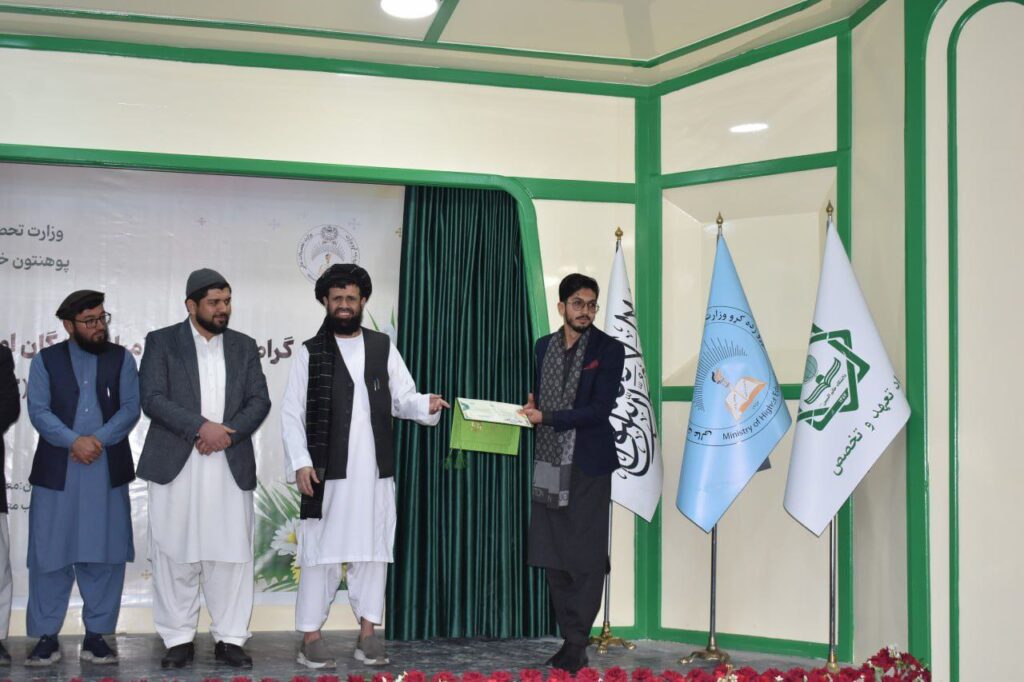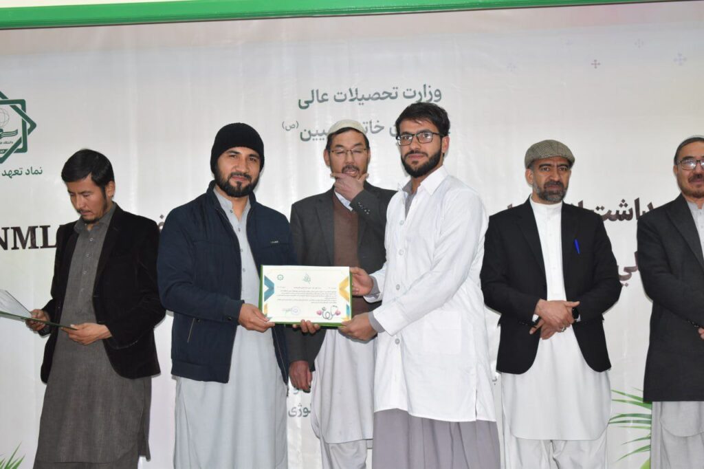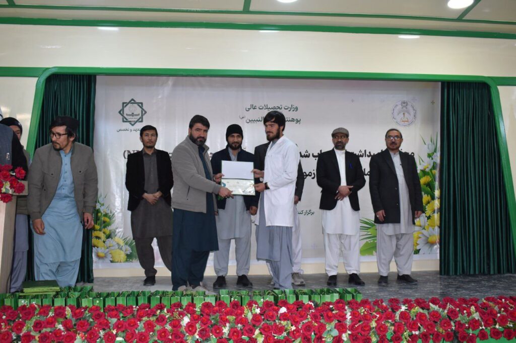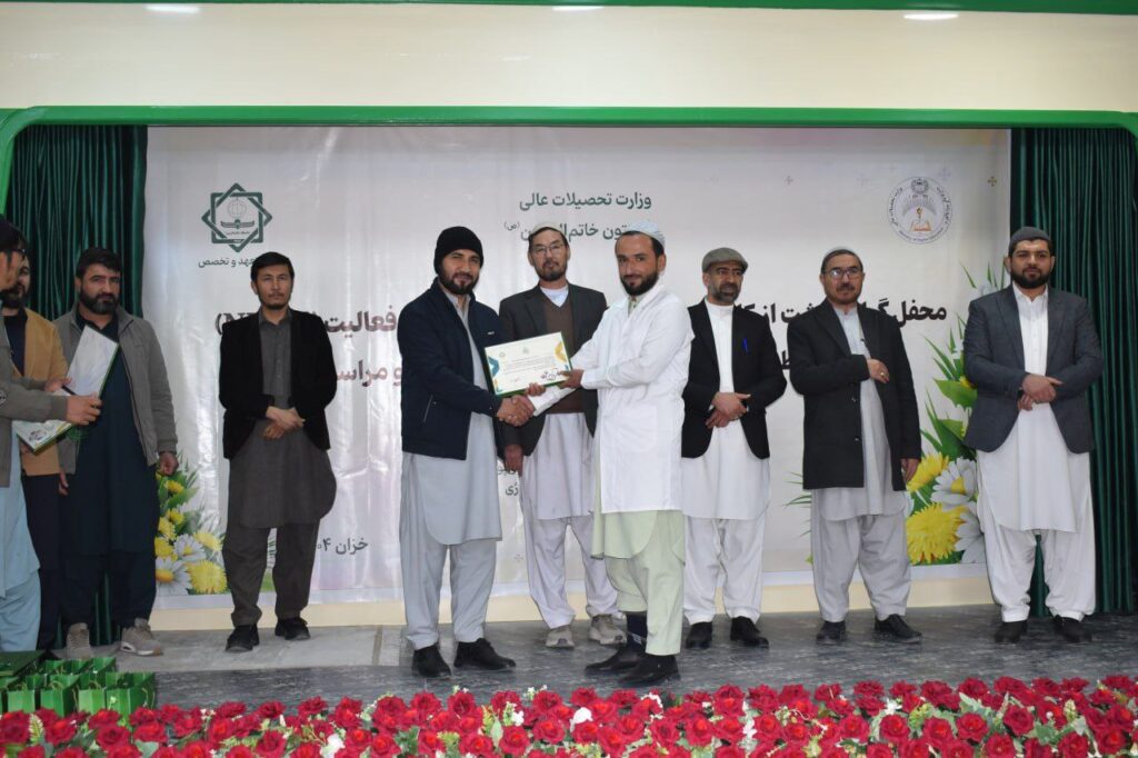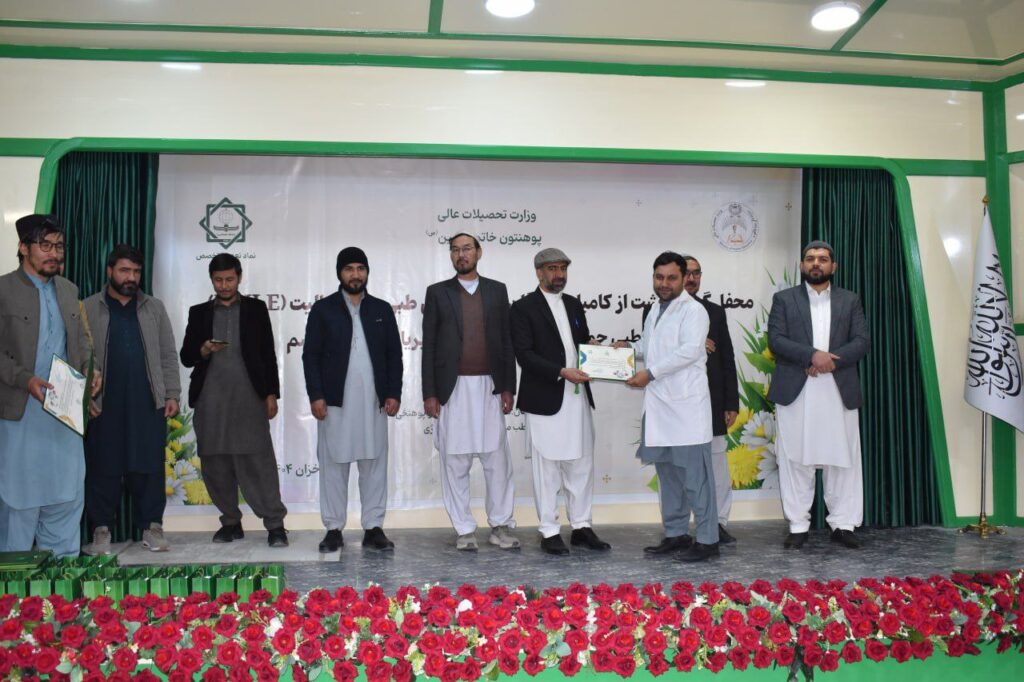مراسم تقدیر از ۱۲۹ تن از فارغالتحصیلان رشتههای طب معالجوی و ستوماتولوژی پوهنتون خاتمالنبیین (ص) که در امتحانات ملی جواز فعالیت سال ۱۴۰۴ موفق به کسب نمرات قبولی گردیدهاند، روز پنجشنبه ۱۳ قوس ۱۴۰۴ در سالن اجتماعات اکادمیسین حضرت آیتالله العظمی محسنی (ره) برگزار شد. این برنامه به ابتکار معاونت امور محصلان و با همکاری پوهنحیهای طب معالجوی و ستوماتولوژی راهاندازی گردید و معین امور محصلان وزارت محترم تحصیلاتعالی، اعضای هیأت رهبری پوهنتون، استادان، فارغان، خانوادهها و مهمانان ویژه در آن حضور داشتند. فضای مراسم با حضور پرشور محصلان و استادان رنگ و نشاط خاصی به خود گرفته بود و شور و شعف پیروزی فارغان در تمامی بخشهای برنامه محسوس بود.