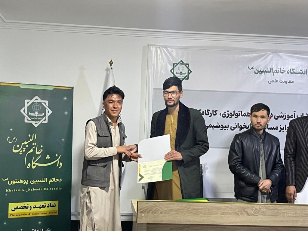 پوهنحی تکنالوژی طبی، پوهنتون خاتم‌النبیین (ص) ورکشاپ دوماهه‌ی «مبانی آنالیز خون و تکنیک‌های نوین» را از تاریخ ۱۵ سنبله تا ۱۵ عقرب ۱۴۰۴ به‌منظور ارتقای ظرفیت علمی اساتید و محصلین برگزار نمود. این برنامه آموزشی شامل ۱۶ جلسه ترکیبی نظری و عملی بود و با تمرکز ویژه بر تقویت دانش علمی و مهارت‌های عملی در زمینه هماتولوژی و توانایی تشخیص دقیق بیماری‌های خونی طراحی شد.