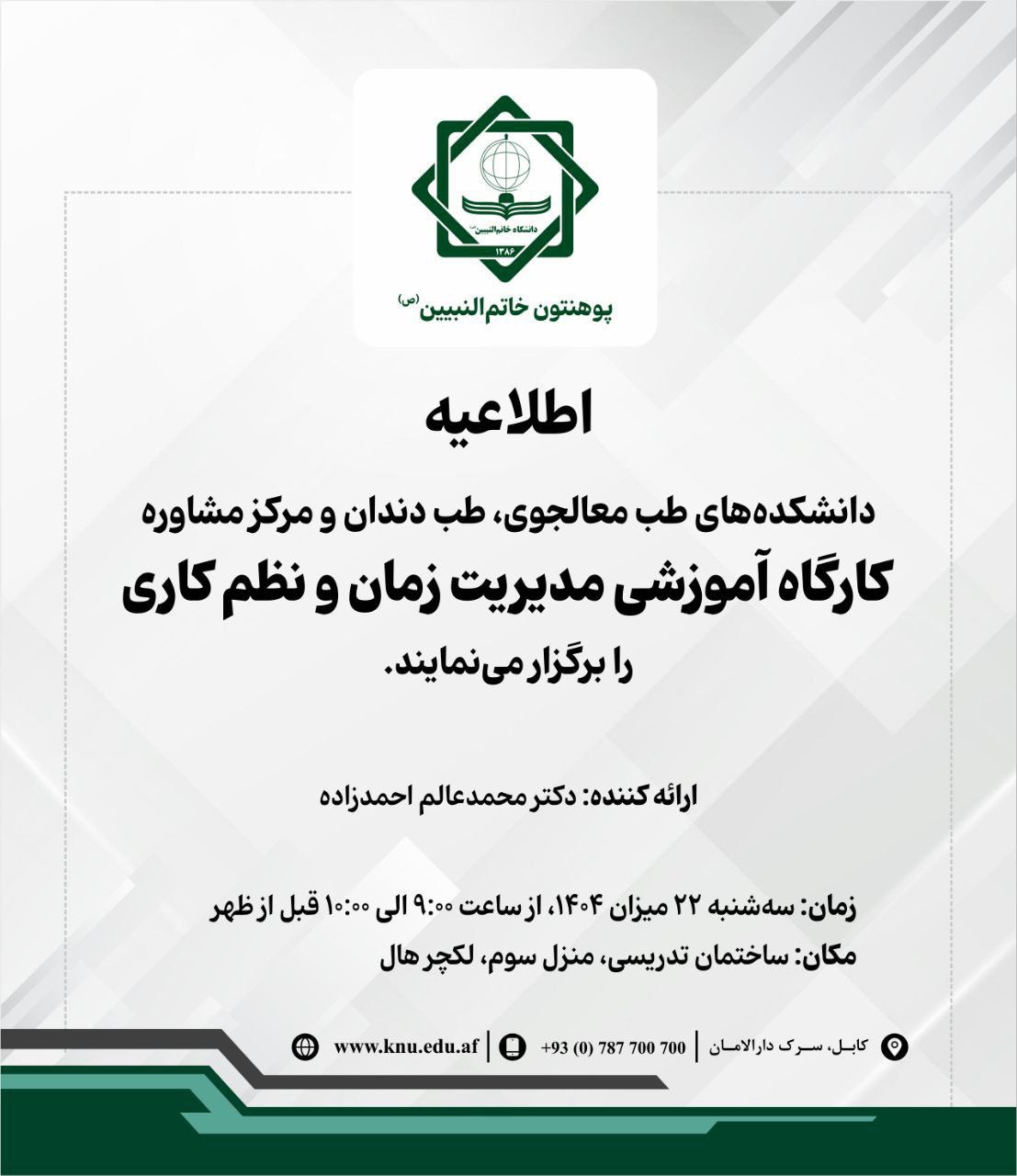 اطلاعیه برگزاری سمینار آموزشی «مدیریت زمان و نظم کاری»