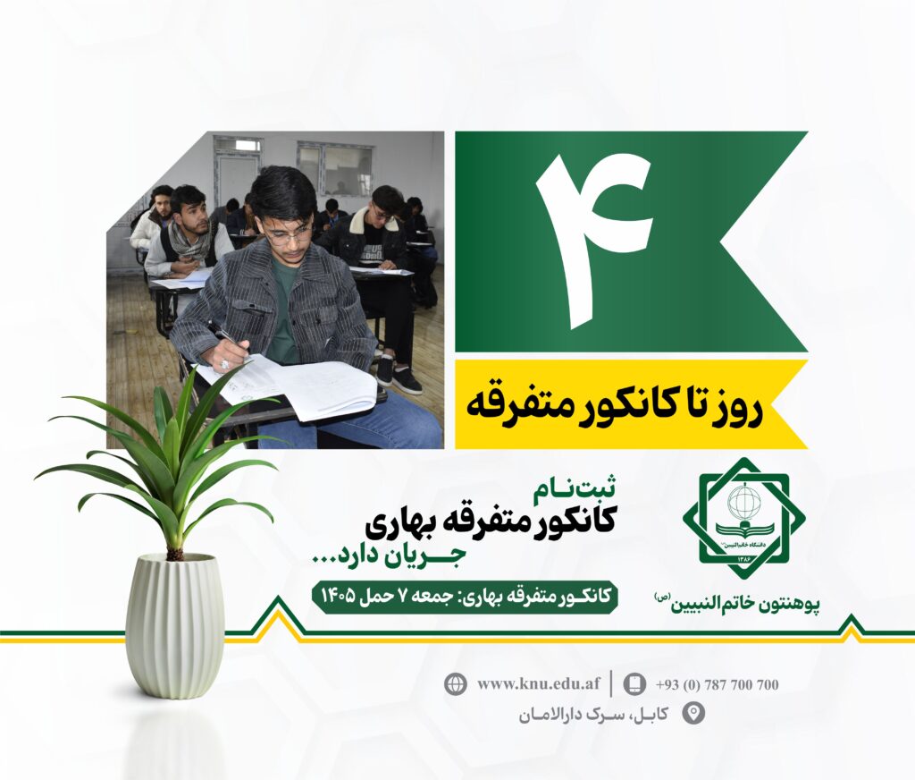 پوهنتون خاتمالنبیین(ص) معاونت امور محصلان کمیته کانکور اطلاعیه نتایج کانکور بهاری ۱۴۰۵ به اطلاع کلیه متقاضیان عزیز کانکور بهاری ۱۴۰۵