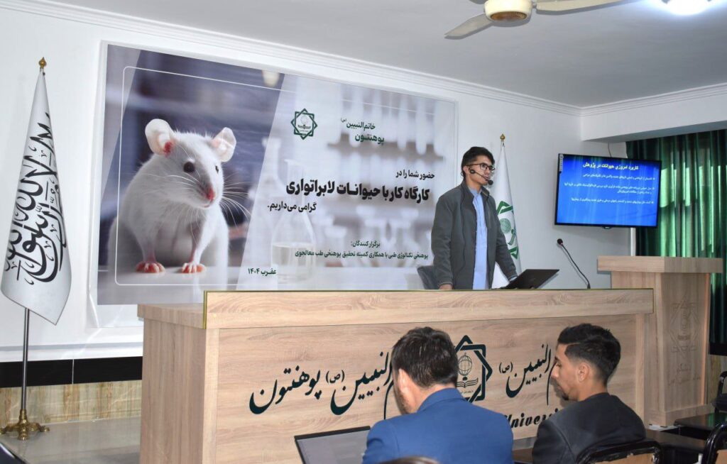 در بخش تیوری این کارگاه، مباحث علمی در پیوند با تعریف و انواع حیوانات آزمایشگاهی، اصول تغذیه و نگهداری، معیارهای پوشش و معدومسازی حیوانات و رعایت موازین اخلاقی در کار با حیوانات توسط استاد داود حسینی، رئیس دانشکده تکنالوژی طبی ارائه گردید.