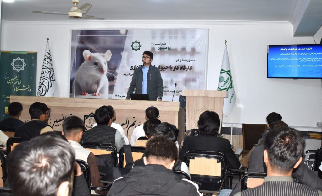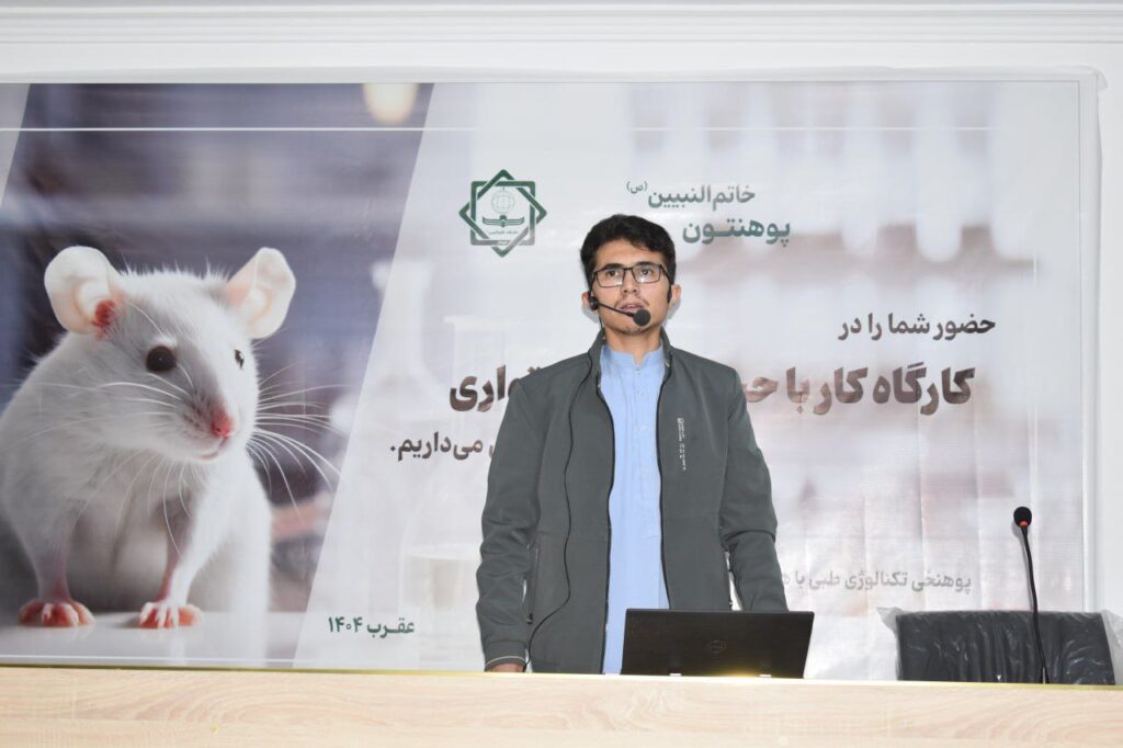 دانشکده تکنالوژی طبی دانشگاه خاتمالنبیین(ص) با همکاری کمیته تحقیق دانشکده طب معالجوی، کارگاه چهارروزهی «کار با حیوانات لابراتواری (تیوری و عملی)» را از تاریخ ۱۰ الی ۱۳ عقرب ۱۴۰۴ بهمنظور ارتقای ظرفیت علمی اساتید و محصلین برگزار نمود.