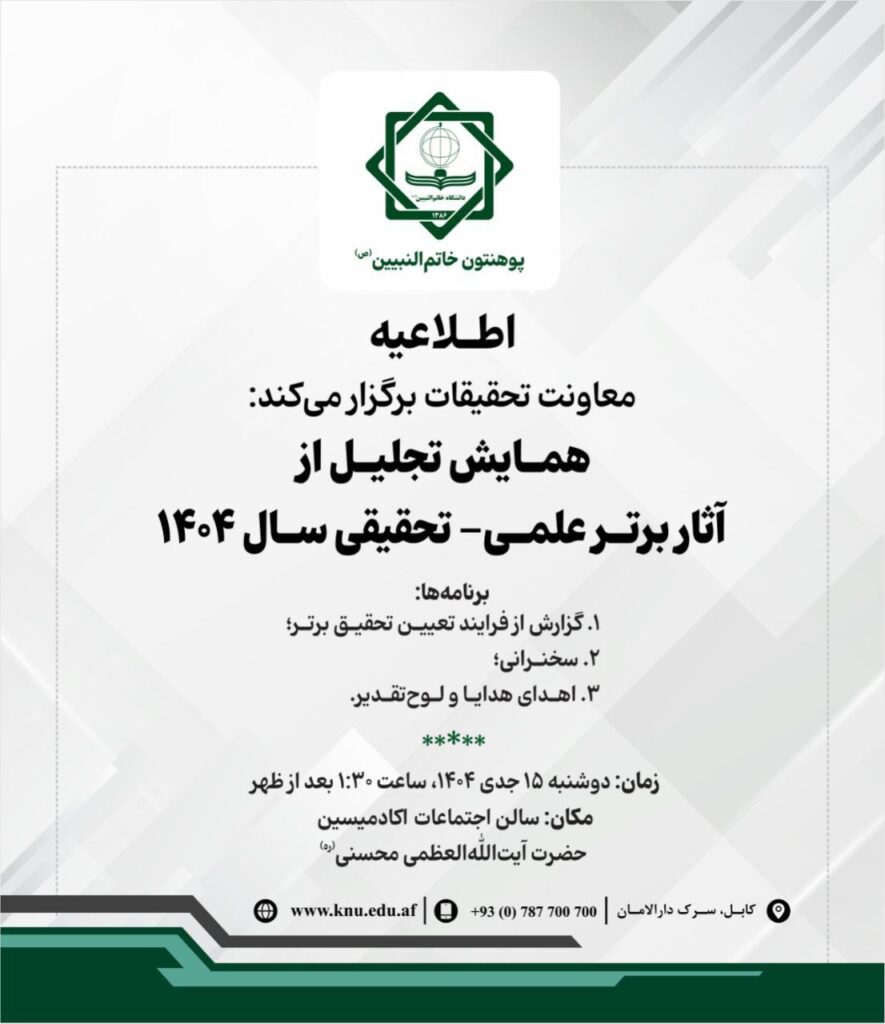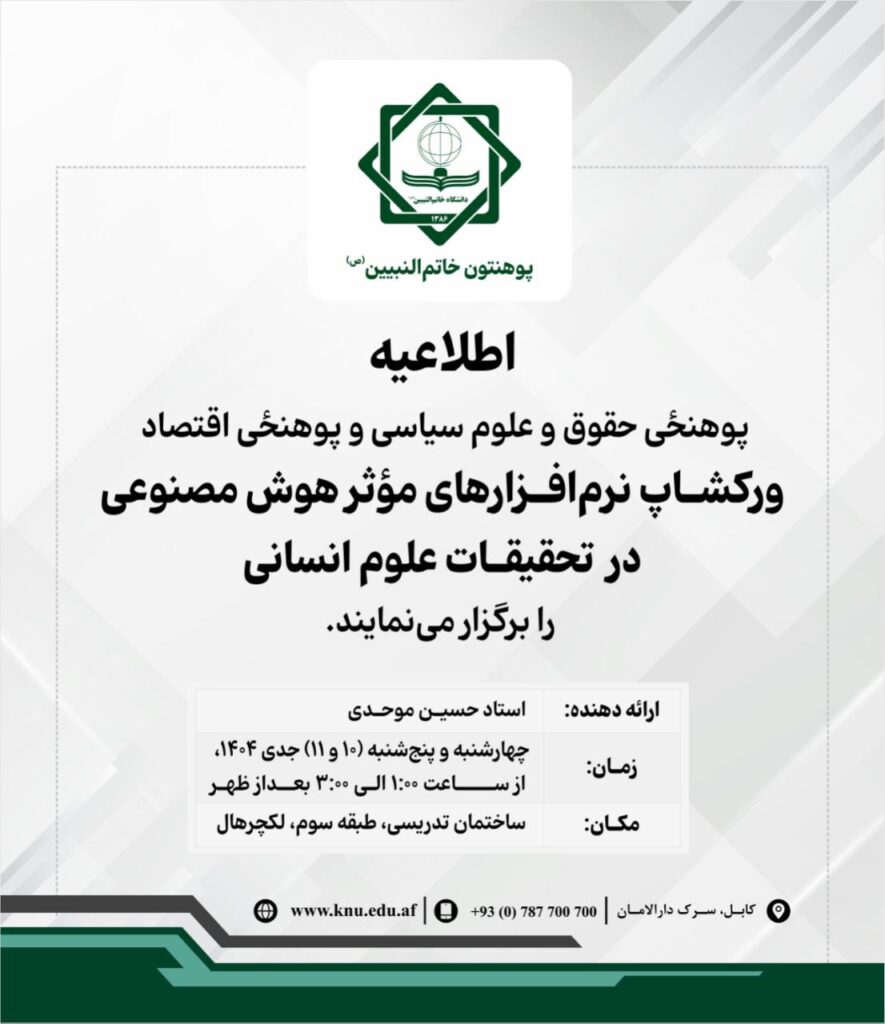 این ورکشاپ در روزهای ۲ و ۳ جدی ۱۴۰۴ از سوی پوهنځی علوم اجتماعی پوهنتون خاتمالنبیین با همکاری پوهنځی علوم